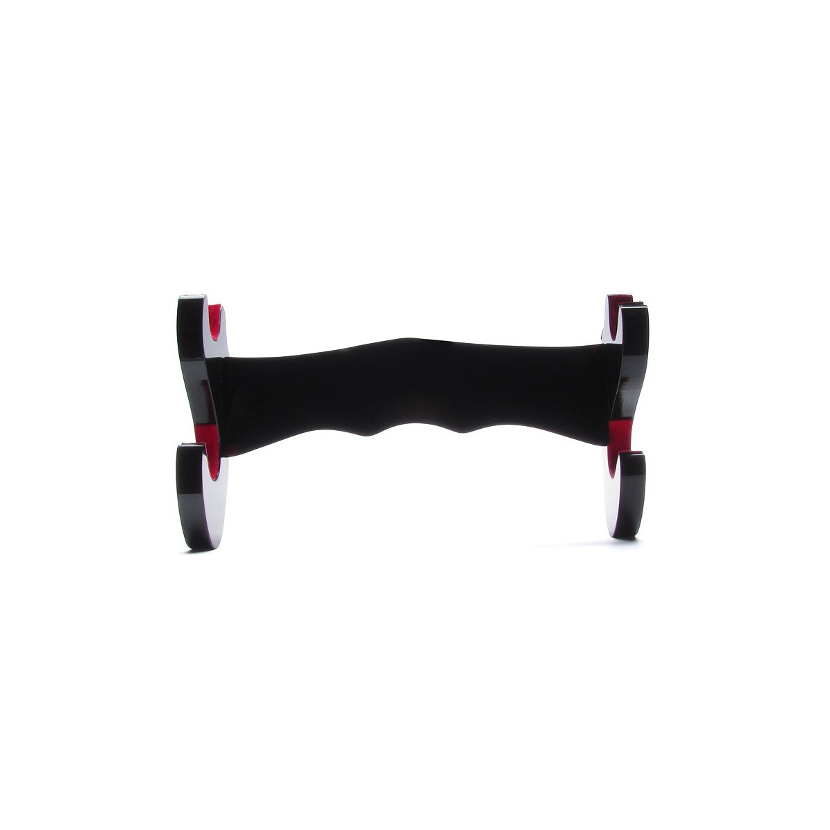 - En madera lacada en negro con insertos de tela roja