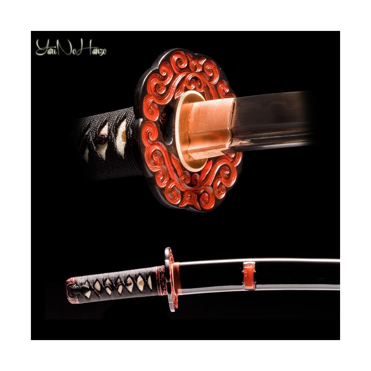 Todas las hojas se forjan con métodos tradicionales y se pulen a mano, por lo que cada hoja es única. Todas las katanas hechas a mano de YariNoHanzo se pueden desmontar y son de "full tang", es decir, el Nakago (espiga) continúa casi hasta el Tsuka (mango). El montaje es una fase a la que dedicamos mucho cuidado para evitar que las distintas partes del Koshirae se muevan durante el uso, y no utilizamos tornillos ni soldaduras durante la fase de montaje.